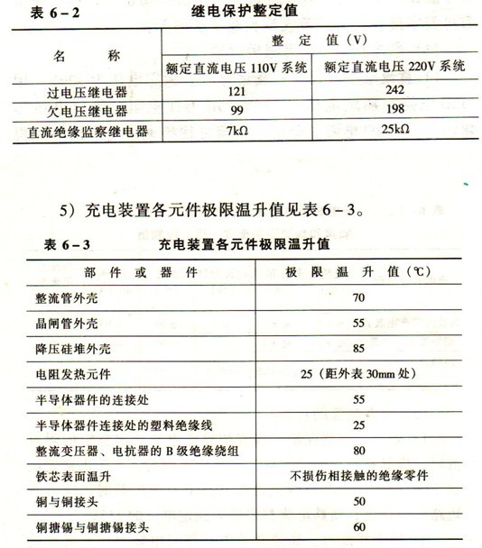 4)充電裝置的保護(hù)及聲光報(bào)警功能。充電裝置應(yīng)具有過流、過壓、欠壓、絕緣監(jiān)察、交流失壓、交流缺相等保護(hù)及聲光報(bào)警的功能。繼電保護(hù)整定值見表6-2